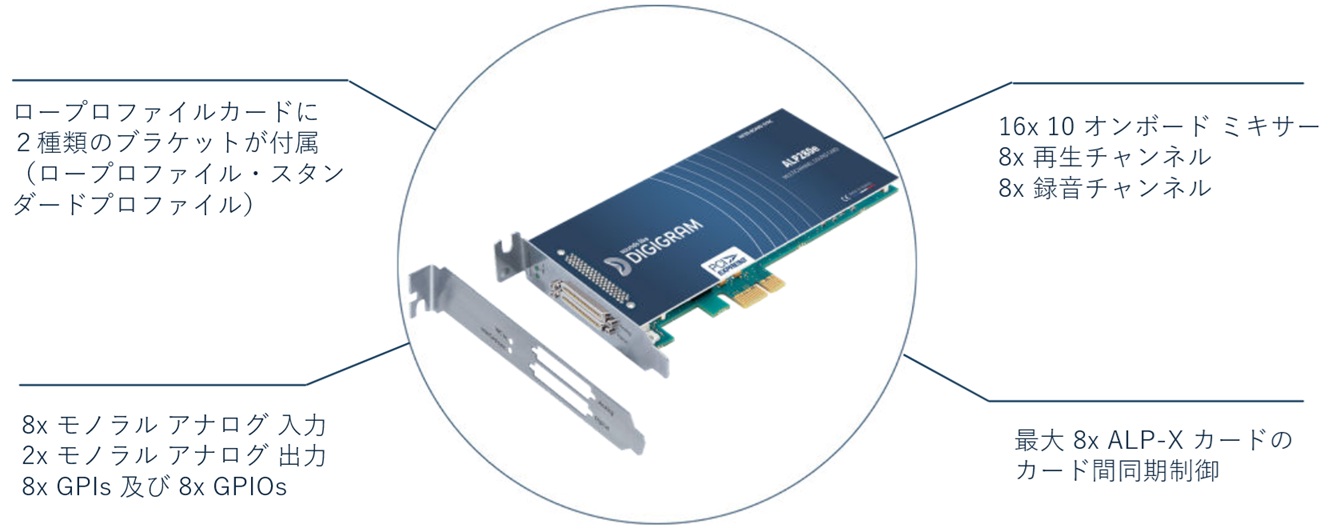AALP280eは、WindowsおよびLinux*環境下で動作するプロフェッショナル向けPCベースオーディオシステムにおいて、8系統のラインレベルオーディオ入力からのアナログ信号取得を目的に設計されています。この薄型カードはあらゆる課題に対応可能で、オーディオ制作、録音、音声分析といったクリティカルなオーディオ録音アプリケーションにおいて、比類のない信頼性と最高品質を保証します。