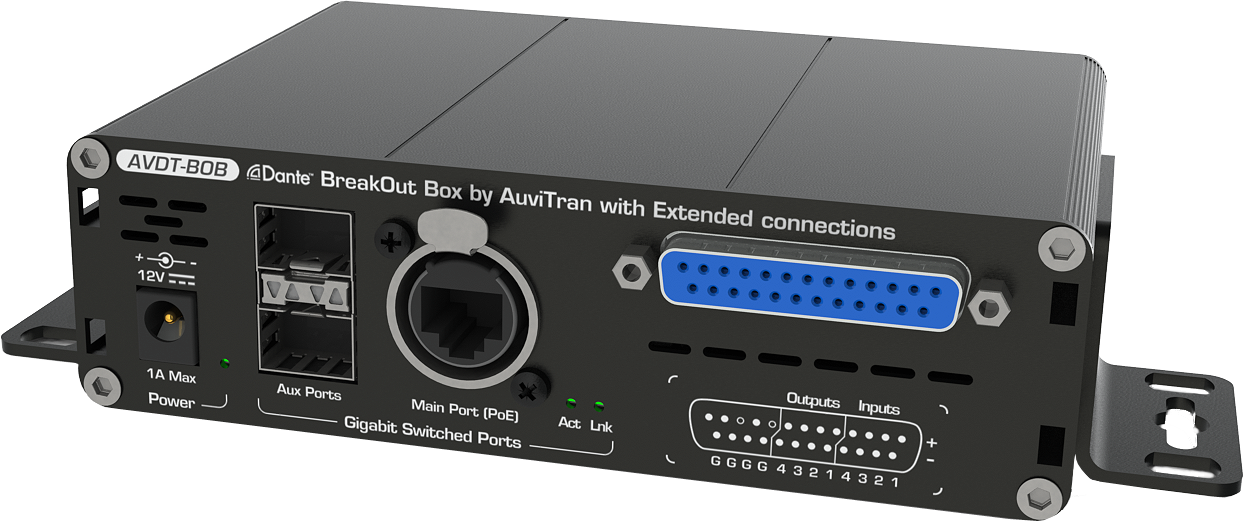 AVDT-BOBはデジタル信号処理を内蔵したコンパクトなDanteブレイクアウトボックスです。AVDT-BOBは最新のアナログマイクプリアンプを搭載し、Danteを介した非常に高いオーディオダイナミックとクオリティを低価格で実現しています:
