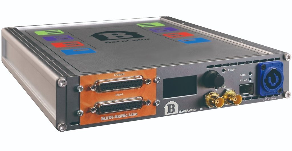 BarnPalette-MADI-8xLine は、アナログ音声を光ファイバーまたは銅線経由で伝送するための高品質かつ堅牢なソリューションを提供します。BarnColor システムとの互換性があり、または単独製品としても使用可能で、各ユニットには 8 チャンネルのアナログ入力と 8 チャンネルのアナログ出力が搭載されています。複数のユニットを相互接続することができ、音声信号は柔軟にミックスされ、最大 64 チャンネルの MADI 信号へルーティング可能です。