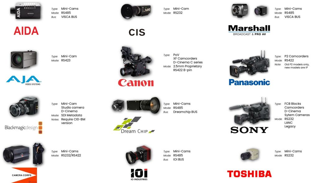• Supports camera bus for selected protocols such as Dreamchip, IOI, Marshall, VISCA