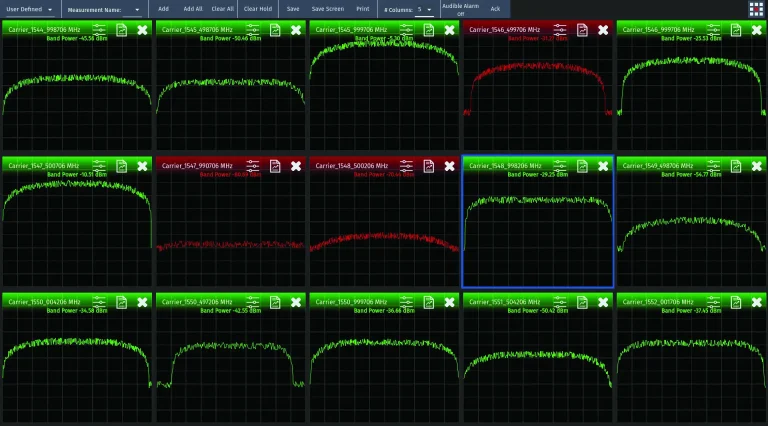 Users can monitor multiple (up to 100) carriers at a time for viewing demodulated signal characteristics, including historical view.