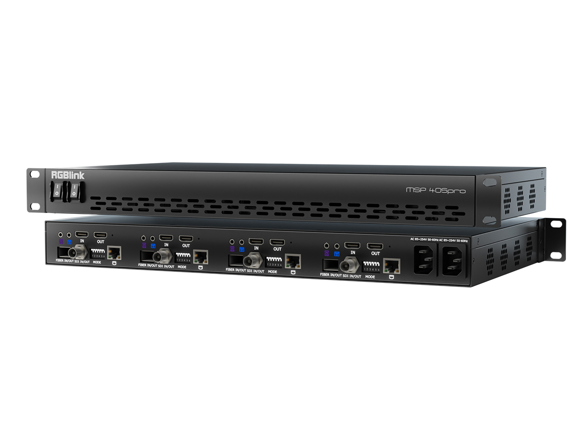 RGBlink MSP 405は、要求の高い4K UHDアプリケーション向けに設計されたプロフェッショナルなビデオコンバーターです。HDMI、SDI、光ファイバーの多様なインターフェースを備え、最大3840×2160P@60Hzの超高精細映像入出力に対応。HD/SD解像度とも下位互換性を持ちます。 HDMI、SDI、光ファイバーのいずれかの入力信号を他の2つのプロトコル出力に変換可能で、高性能FPGA純粋ハードウェアアルゴリズムによりゼロ遅延プロトコル変換を実現。リアルタイムかつ正確な信号伝送を保証します。 ビデオモニタリング、オーディオエンベデッド、優れたラインイコライゼーション、信号クロック回復機能を統合しており、特に大規模ステージやイベントなど、映像信号伝送遅延が極めて重要となる中~長距離アプリケーションに最適です。強力な耐干渉性と高セキュリティ、コンパクトかつ軽量設計により、SDIおよびHDMIビデオ信号の変換・伝送に理想的な選択肢となります。 用途に応じて、MSP 405は複数のモデルを提供します。バッテリーケース付きでモバイル運用が可能なMSP 405、1Uラックに最大4台設置でき冗長電源を備えるMSP 405pro、そしてロッカブル接続で最高の品質を提供するMSP 405premierがあり、あらゆる設置要件に対応します。