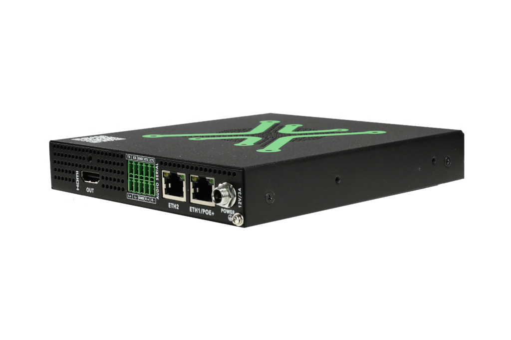 • アナログ & デジタルオーディオ:バランスアナログ入力を備え、AAC、リニアPCM、およびオプションのDanteオーディオをサポートします。