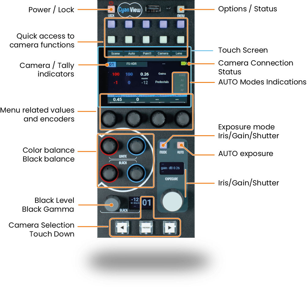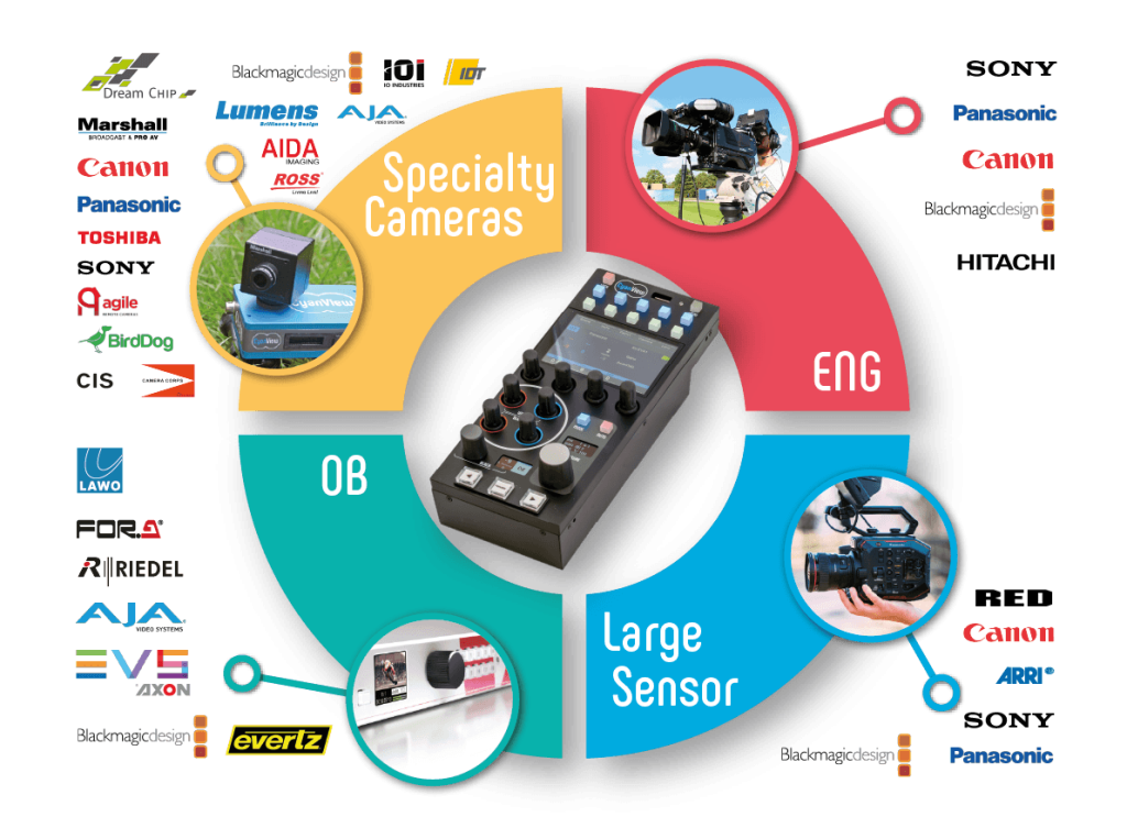 CyanviewのRCPは、放送業界で使用されるほとんどのブランドや種類のカメラに対応した、マルチカメラ制御パネルです。