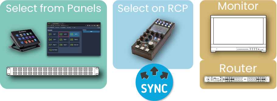 ルーターやスイッチャーとの統合により、パネル1台からすべてのカメラへ迅速にアクセスでき、接続できるカメラ台数に制限はありません。